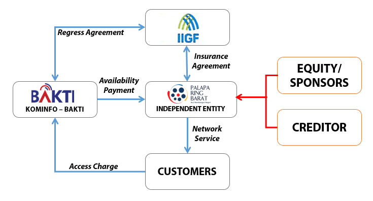 Palapa Ring Project menggunakan skema kerjasama pembangunan dengan Public Private Partnership (PPP). PPP diartikan sebagai bentuk perjanjian antara Pemerintah dengan pihak swasta untuk penyediaan Layanan public tertentu.